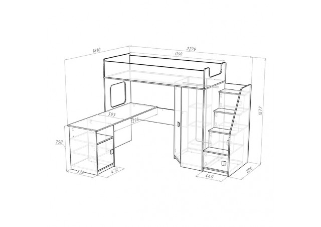 Высота кровати чердака всего 1677 мм.